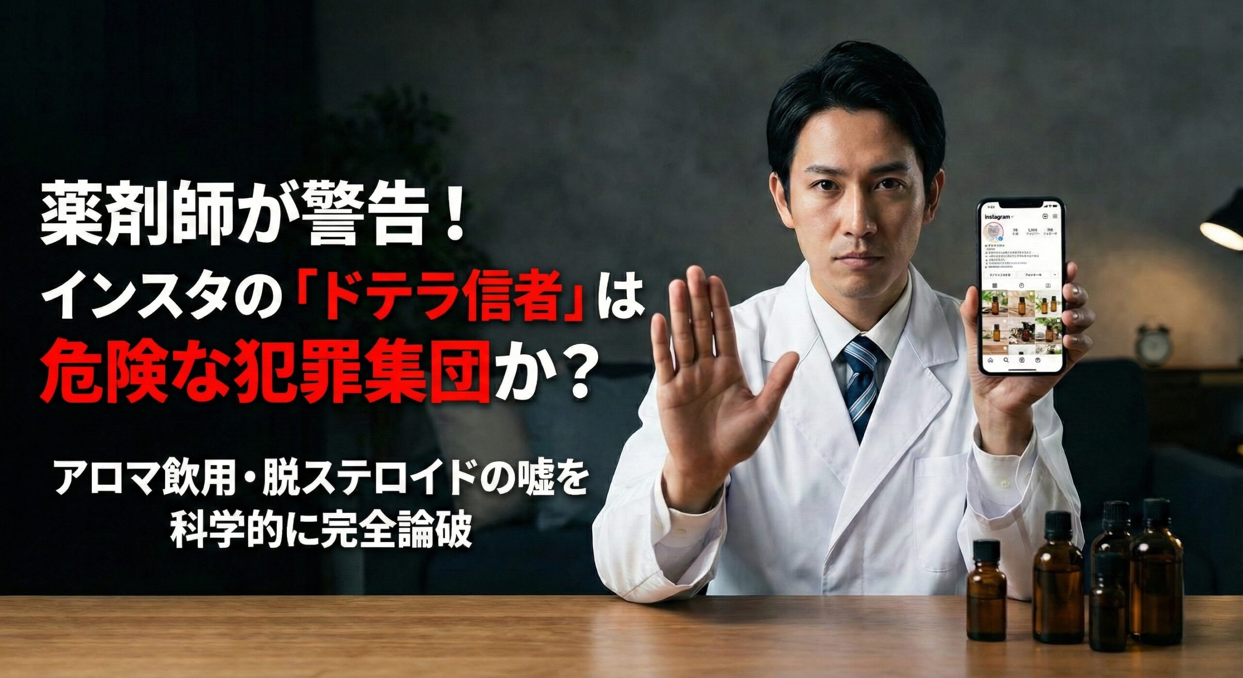 - インスタ上の「アロマ飲用」「脱ステロイド」推奨は、医学的根拠のない危険行為。
