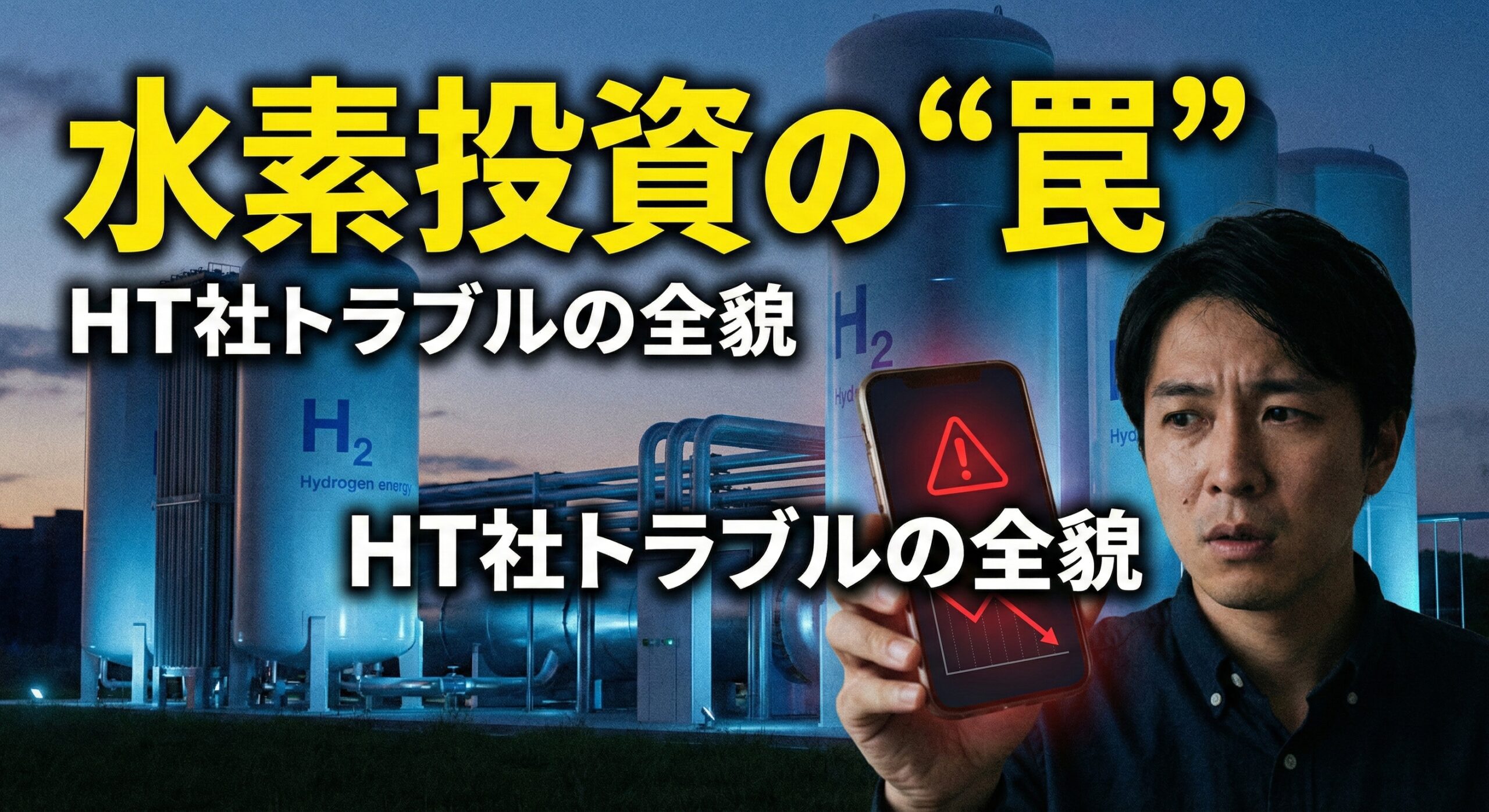 | 2023年~現在 | トラブルの表面化: 実証運転開始後も、商業化の具体的な進展が見えない中、出資者間での不安が高まりました。2023年頃から返金トラブルや連絡不通の相談が増加。2024年4月には、水素関連の技術研究組合であるHySTRAが、自身の名を騙った不審な投資勧誘について注意喚起を行いました。現在、HT社の活動実態は不透明となっており、多くの出資者が今後の動向を注視しています。 出典:HySTRA|当組合及び組合員企業の名を騙った不審な投資勧誘にご注意ください |